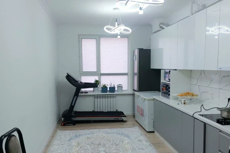 Многодетная семья Бахтияра Балтабаева только что въехала в трехкомнатную квартиру на первом этаже и уже начала обустраиваться с радостью. Глава семейства отметил, что школа находится в шаговой доступности, и один из детей уже начал в нее ходить.
