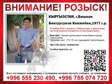 Кенжебек Бектурсунов, родившийся в 1977 году, разыскивается с ноября 2024 года, о чем сообщила Совет общественной безопасности.