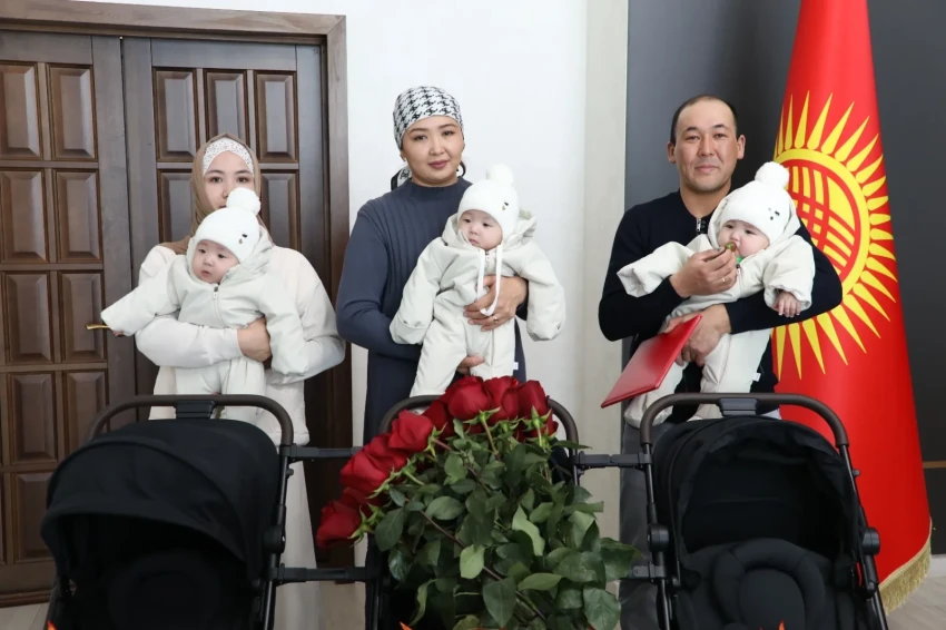 В связи с рождением тройни и с целью поддержки семьи, а также для улучшения демографической ситуации в стране, Камчыбек Ташиев вручил новым родителям ключи от квартиры, расположенной в центре Бишкека.
