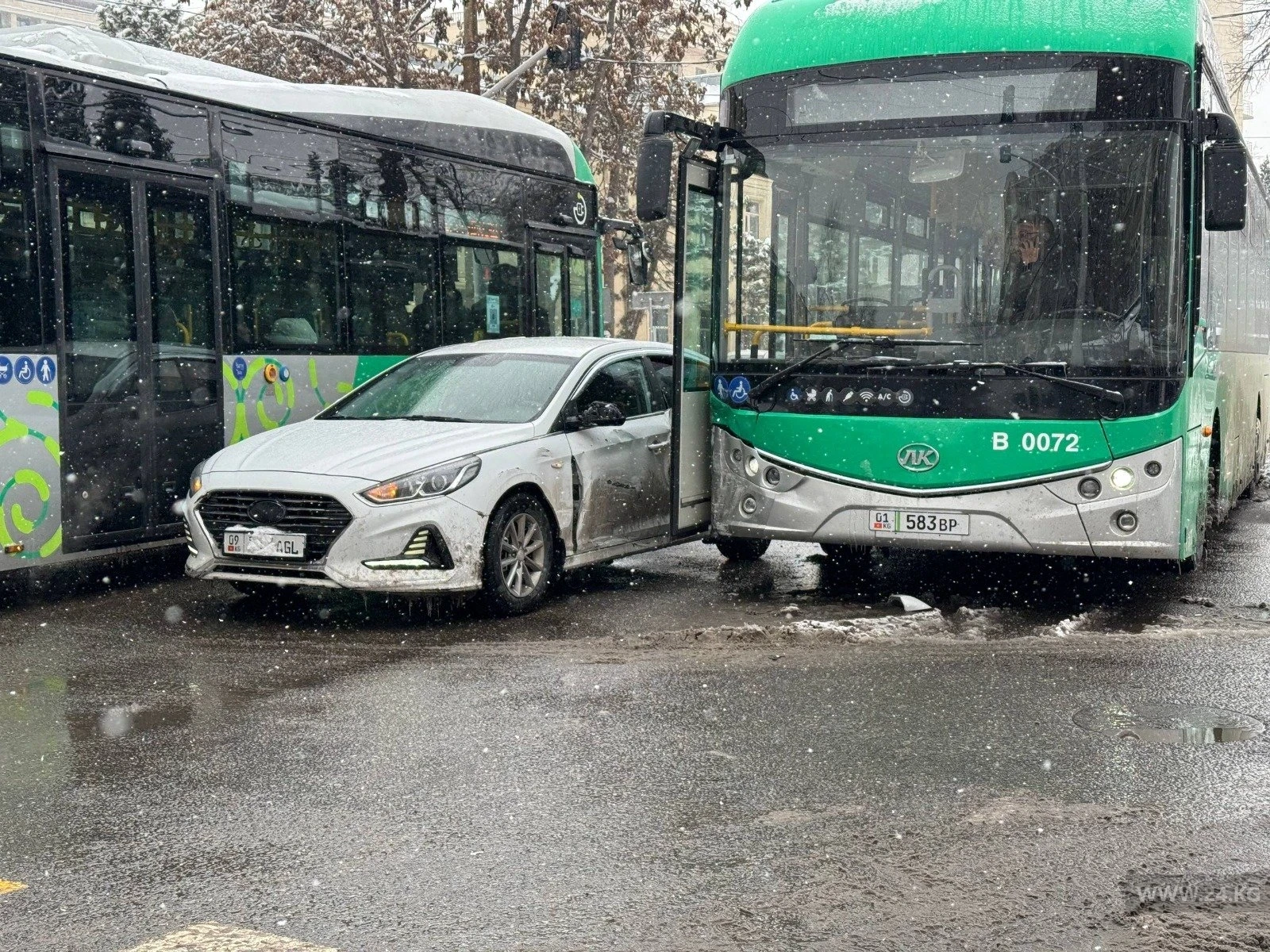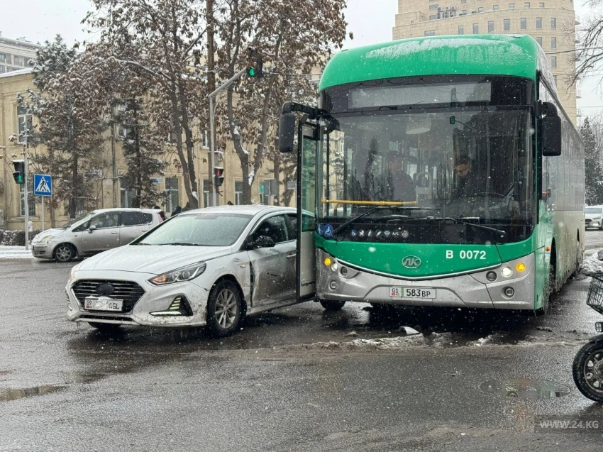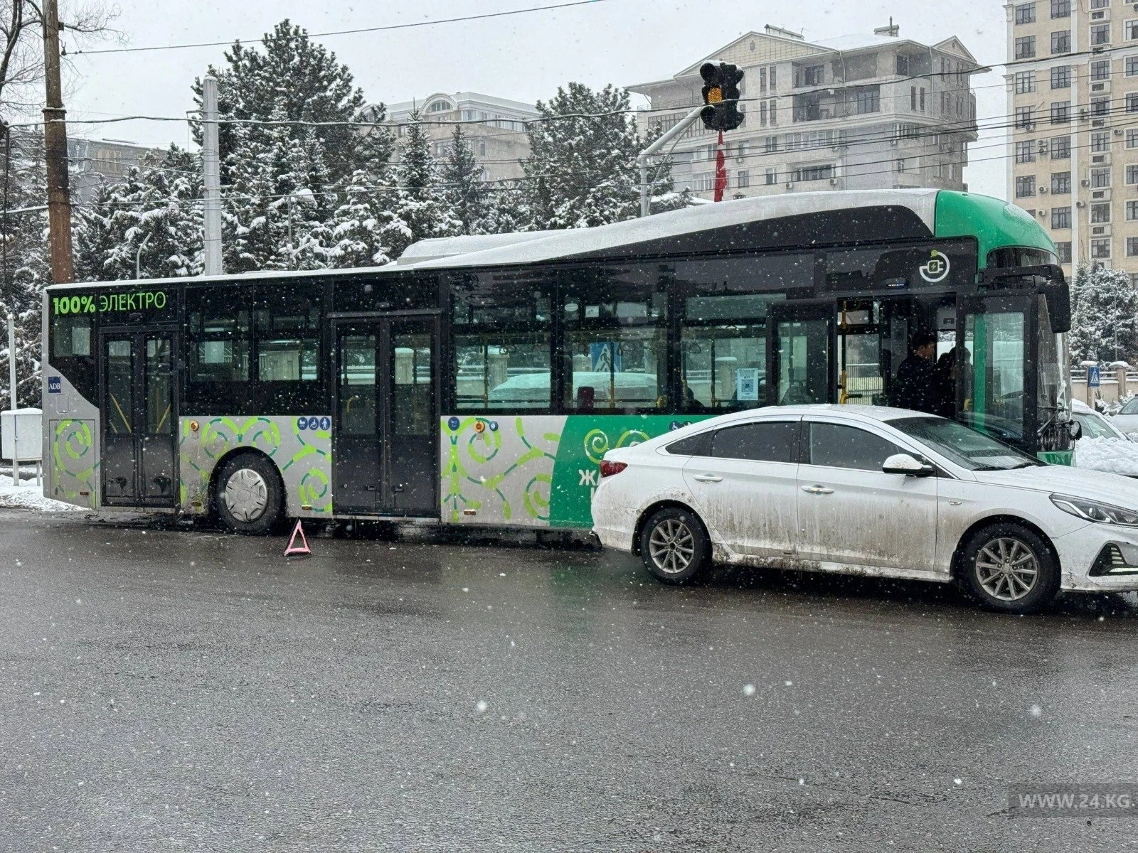 Главная » Общество » В центре Бишкека электробус столкнулся с легковушкой