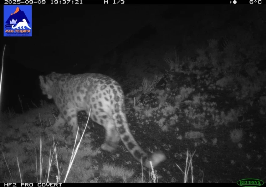 Фотоловушка в парке "Хан-Тенири" запечатлела снежного барса, рысь и волков.