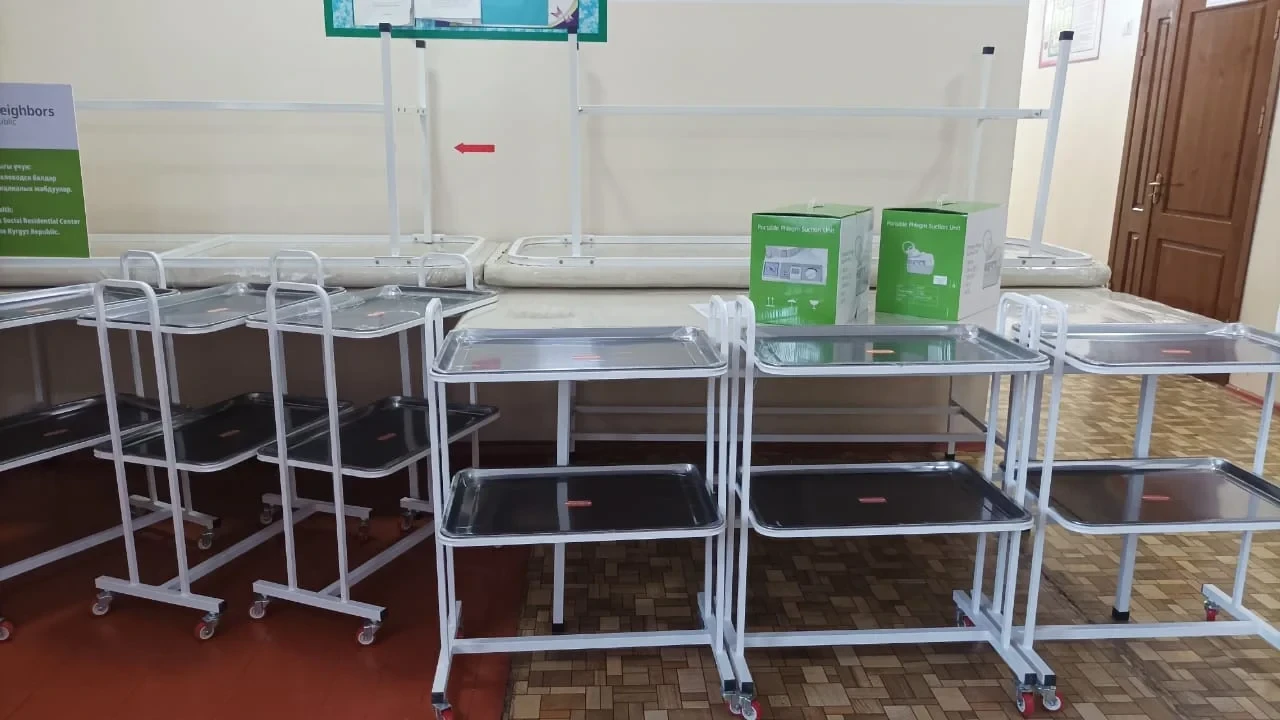 26 января состоялась передача специализированного медицинского оборудования в рамках меморандума о сотрудничестве между Министерством труда, социального обеспечения и миграции Кыргызстана и филиалом международной организации Good Neighbors International. Оборудование было направлено в Беловодское детское социально-стационарное учреждение и Сокулукский реабилитационный центр для людей с инвалидностью.