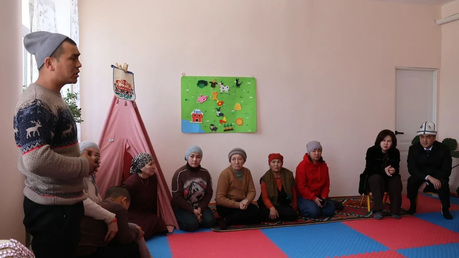 В Нарыне прошла встреча, в которой участвовал Канат Сагынбаев, министр труда, социального обеспечения и миграции Кыргызской Республики. Он пообщался с родителями детей с инвалидностью, которые получают услуги в реабилитационном центре «Мейкин».