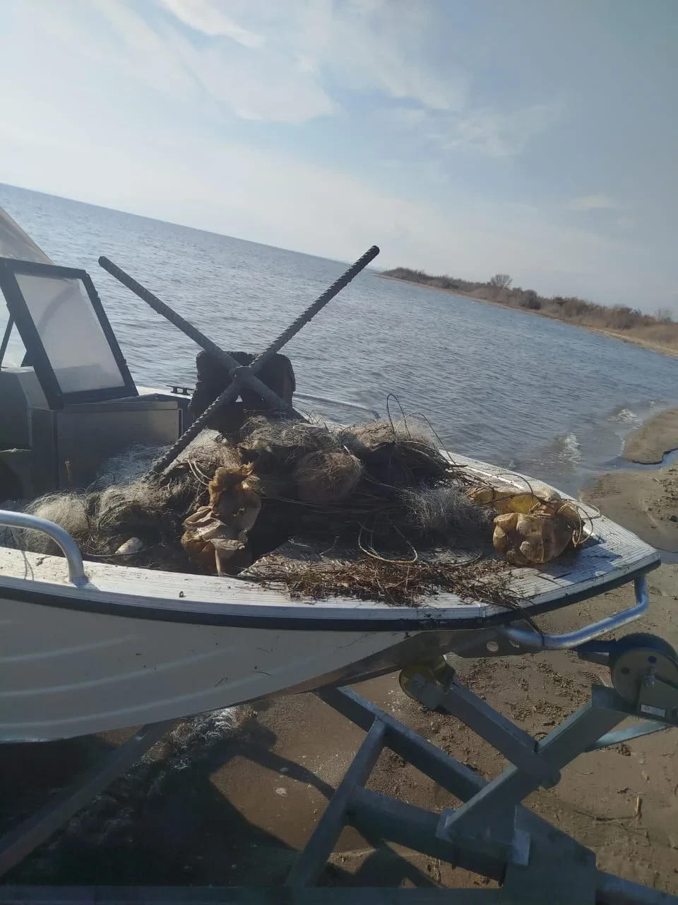 В результате операции было изъято свыше 500 метров старых синтетических рыболовных сетей, изготовленных в Китае.