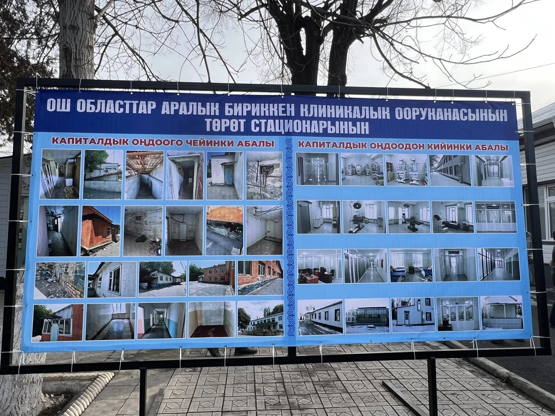 Ошский областной родильный дом открыл свои двери 11 апреля 1968 года и был рассчитан на 250 койко-мест. Это первый капитальный ремонт с момента его открытия.