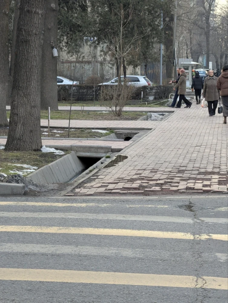 "Вода бьет из-под земли на тротуаре, рядом со шахматной площадкой, со стороны улицы Токтогула, уже больше года", - сообщил он.