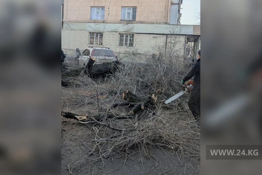 В центре Бишкека часами стоят пробки: коммунальщики пилят деревья на дороге