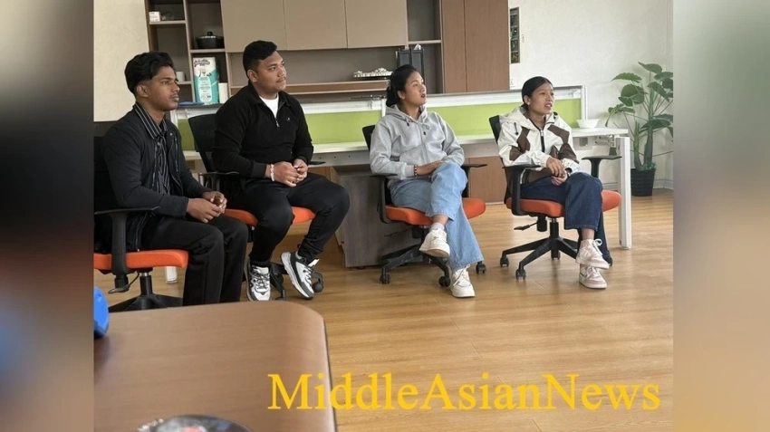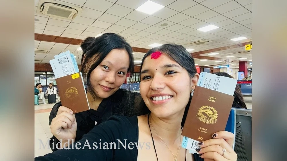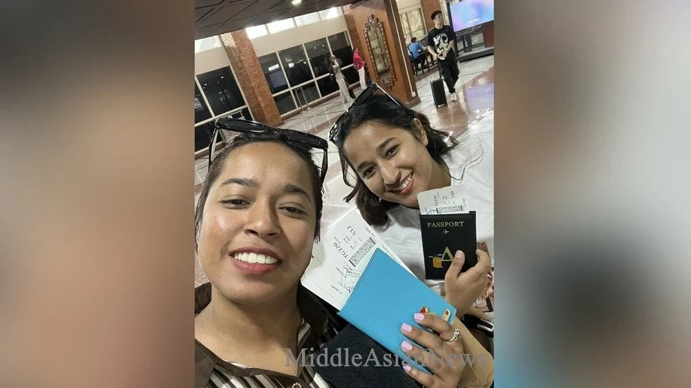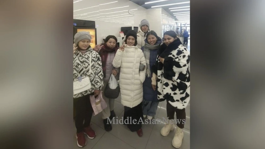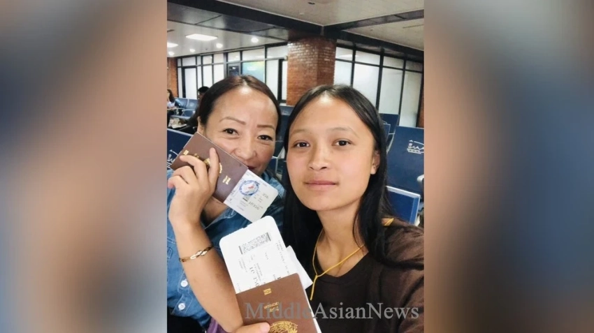 Девушки из Непала прибыли в аэропорт Чингисхана.