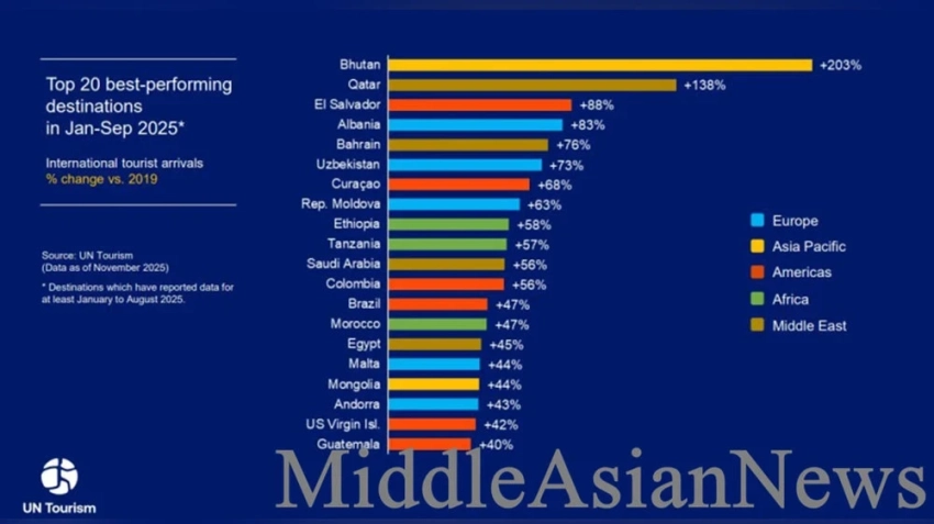 В соответствии с данными ноябрьского выпуска «Всемирного туристического барометра», выпущенного Всемирной туристической организацией ООН (ВТО) за 2025 год, Монголия заняла место среди 20 государств, демонстрирующих наивысшие темпы восстановления туристической отрасли.