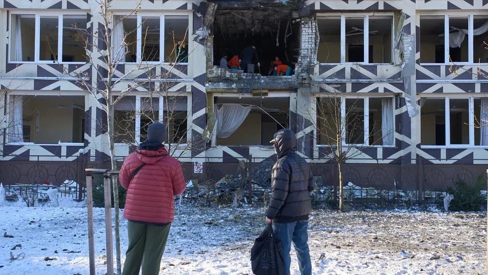 Последствия удара по Киеву. Фото Tetiana Dzhafarova / AFP / Scanpix / LETA.