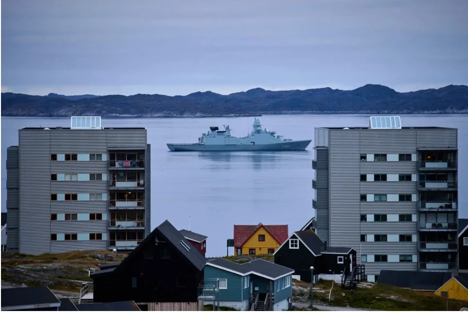 Датский военный корабль во время учений НАТО у берегов Гренландии в сентябре. Гренландия — полуавтономная территория Дании.Кредит...